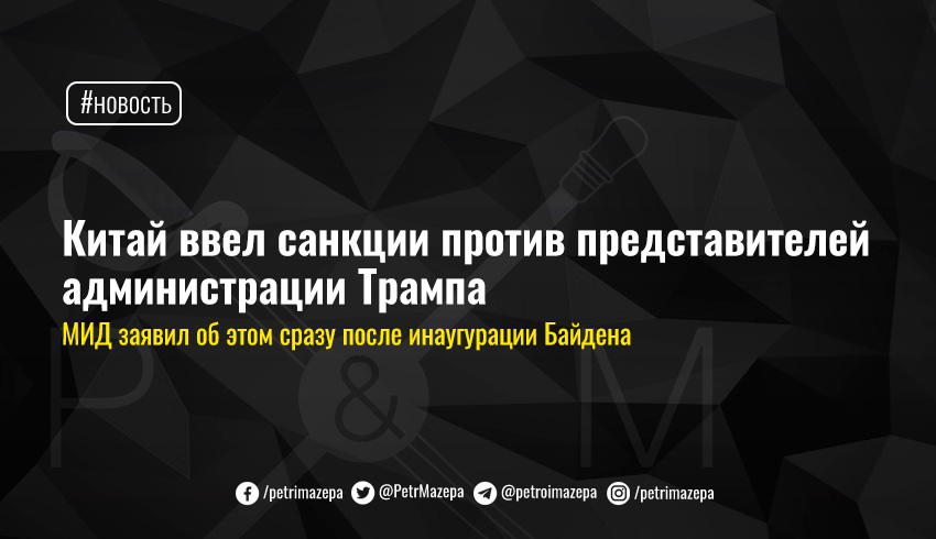 Министерство иностранных дел Китая ввело санкции против представителей администрации 45 президента США Дональда Трампа, в том числе против бывшего госсекретаря Майка Помпео, всего 28 человек.