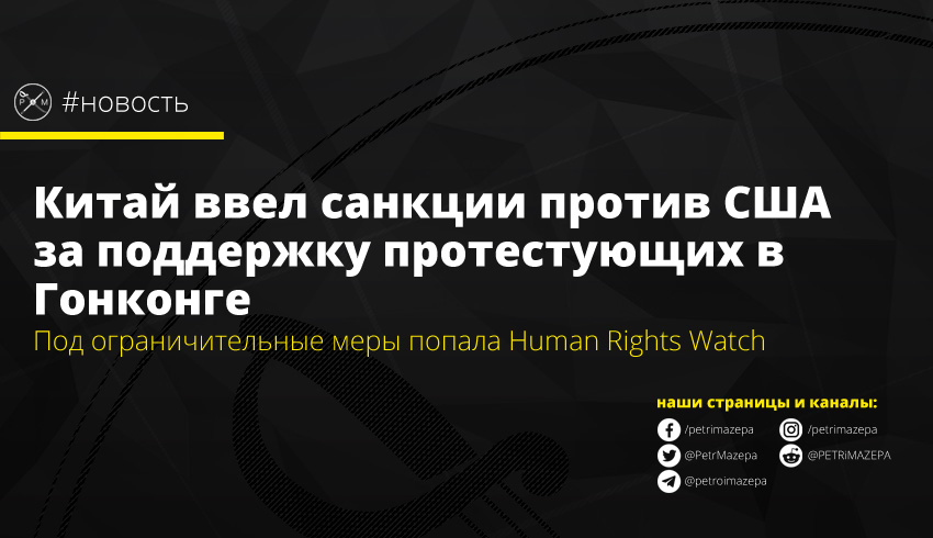 Китай ввел санкции против американской правозащитной организации Human Rights Watch. Причина – поддержка ее членами протестующих в Гонконге. В этом в МИД Китая увидели лояльность к экстремизму и насилию.
