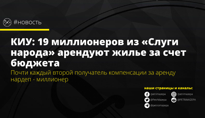 КИУ: 19 миллионеров из «Слуги народа» арендуют жилье за счет бюджета