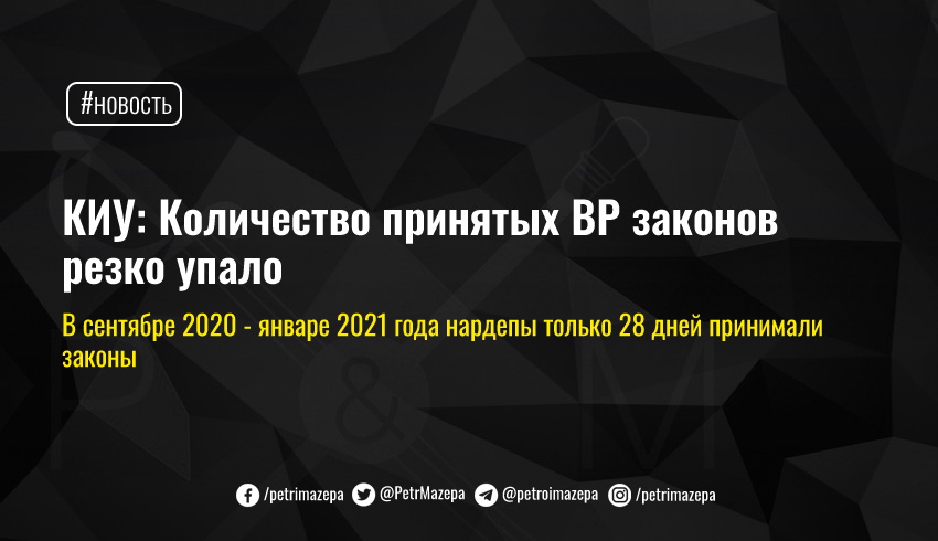 Всего во время четвертой сессии ВР (сентябрь 2020 - январь 2021 года) нардепы имели 28 рабочих дней, во время которых работали в сессионном формате (в феврале - июле 2020 года работали 39 дней), говорится на странице КИУ в Facebook.