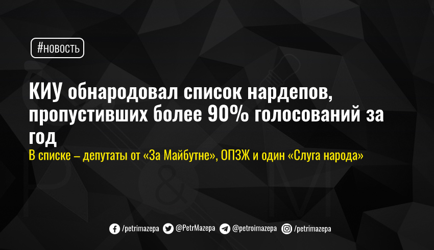 КИУ обнародовал список нардепов, пропустивших более 90% голосований за год