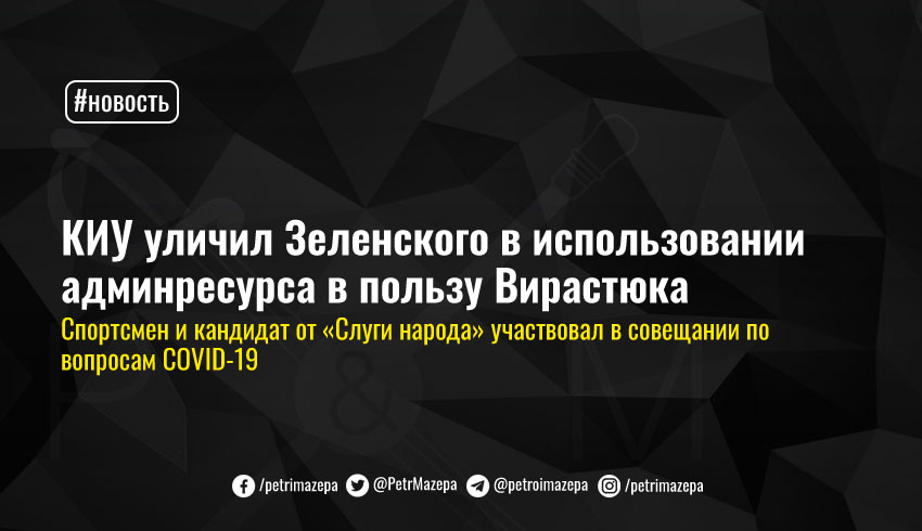 Комитет избирателей Украины сообщил, что уличил президента в скрытой агитации с использованием админресурса – тот создал дополнительное преимущество для кандидата от «Слуги народа» Василия Вирастюка, пригласив его на совещание по вопросам COVID-19.