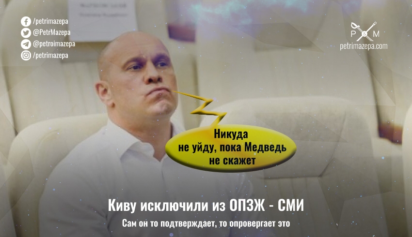 «На мой вопрос об исключении Кивы из партии Юрий Бойко ответил, что эта информация - фейк, никто Киву не исключал и сейчас готовится партийное опровержение для СМИ. Правда, сам Кива уже подтвердил свое исключение. Для меня, например, все происходящее - полная неожиданность, если не сказать больше. Если фейк - ждем опровержения. Не фейк - ждем объяснения», - написал Кузьмин.
