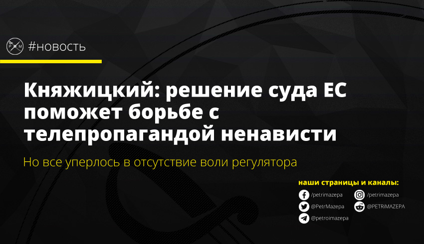 «По мнению Суда Европейского Союза, который расположен в Люксембурге, страны-члены ЕС имеют право ограничивать вещание телеканалов, на которых присутствует пропаганда ненависти. На этом отмечается в заявлении, с которым судьи выступили в четверг, четвертого июля», - написал у себя на Facebook Княжицкий.