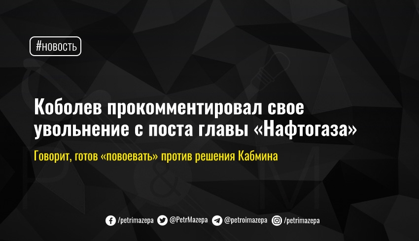 «У меня есть претензии к вчерашним решениям правительства. Не в части моего увольнения, а в части того, что они сейчас ставят крест на реформе корпоративного управления. Одно вчерашнее решение правительства отправляет на помойку все наработки. Важно подчеркнуть. Я не намерен устраивать цирк и подставлять под удар "Нафтогаз"», – написал Коболев на своей странице в Facebook.