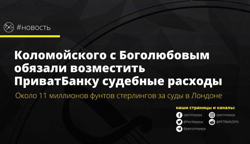 Апелляционный суд Лондона обязал бизнесмена Игоря Коломойского, Геннадия Боголюбова и других корпоративных ответчиков оплатить расходы «ПриватБанка» в сумме 10,9 млн фунтов стерлингов до 12 ноября.