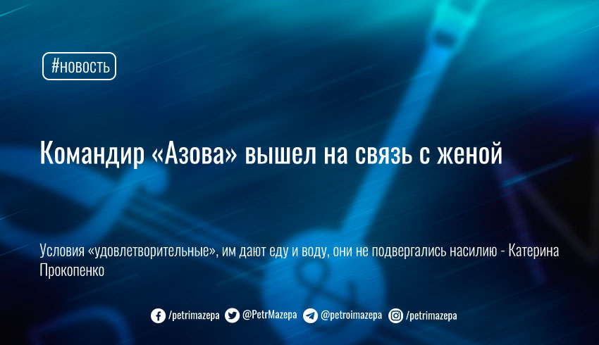 Командир «Азова» подполковник Денис Прокопенко смог выйти на связь с женой — во время короткого разговора он рассказал, что он в порядке, и поинтересовался ее состоянием.