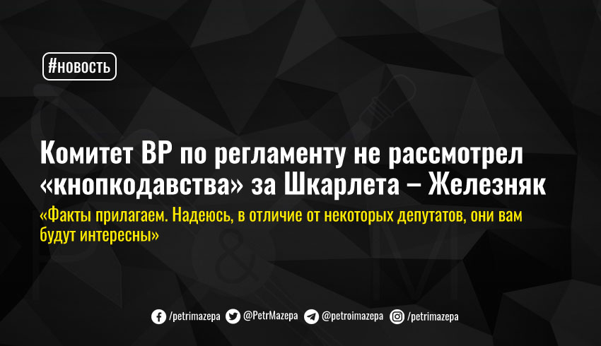 Нардеп от «Голоса» Ярослав Железняк заявил, что регламентный комитет отказался даже рассмотреть представленные фракцией факты «кнопкодавства» при назначении на должность главы Минобрнауки Сергея Шкарлета.