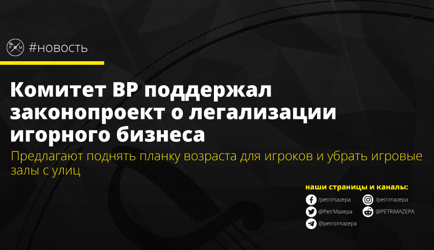 Парламентский комитет по вопросам финансов, налоговой и таможенной политики рекомендовал Раде поддержать законопроект №2285-д о легализации игорного бизнеса.