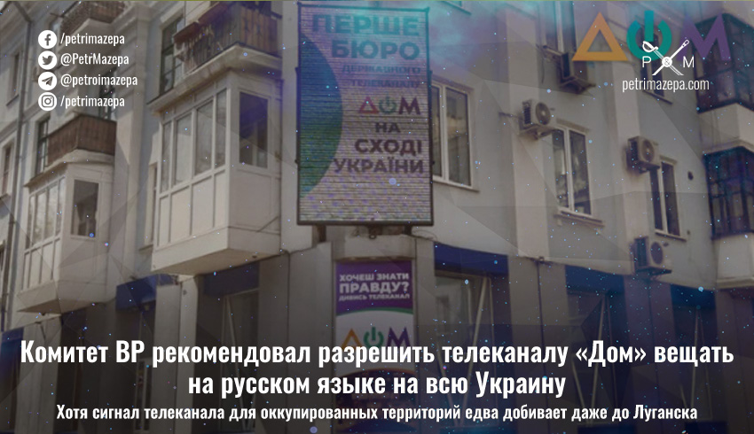 Комитет ВР рекомендовал разрешить телеканалу «Дом» вещать на русском языке на всю Украину