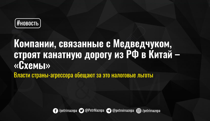 Компании, связанные с нардепом от ОПЗЖ Виктором Медведчуком занимаются строительством канатной дороги в Амурской области – она должна связать РФ и Китай. После завершения строительства власти страны-агрессора обещают всем, кто в нем участвовал, налоговые льготы для коммерческой деятельности на границе двух стран.