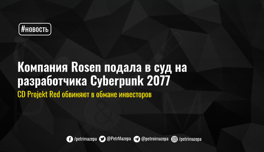 Юридическая компания Rosen подала в суд на CD Projekt Red, создателей игры Cyberpunk 2077 – их обвиняют в обмане инвесторов, из-за чрезмерно позитивных заявлений.