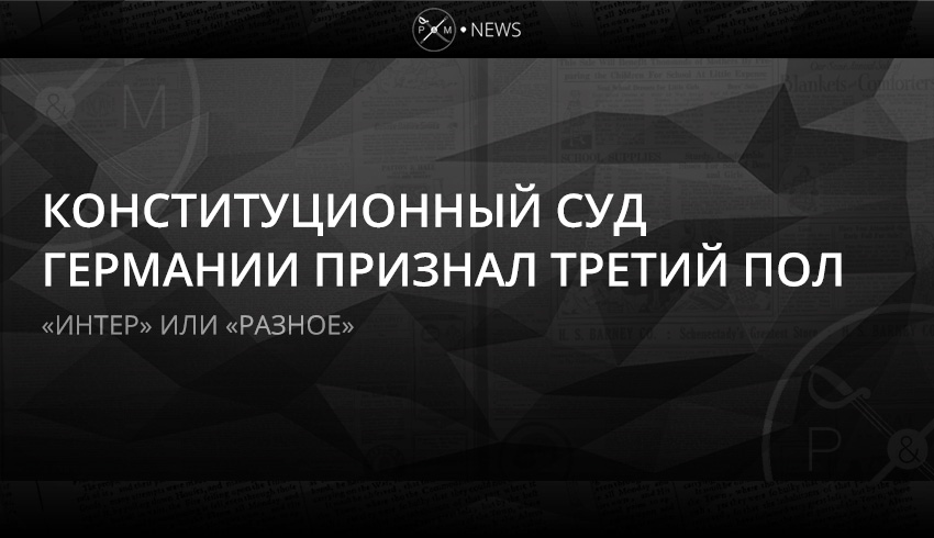 Федеративный конституционный суд Германии обязал государство признать третий пол на документальном уровне – суд разрешил вносить в реестр о рождении третий пол, который обозначается как «интер» или «разное».
