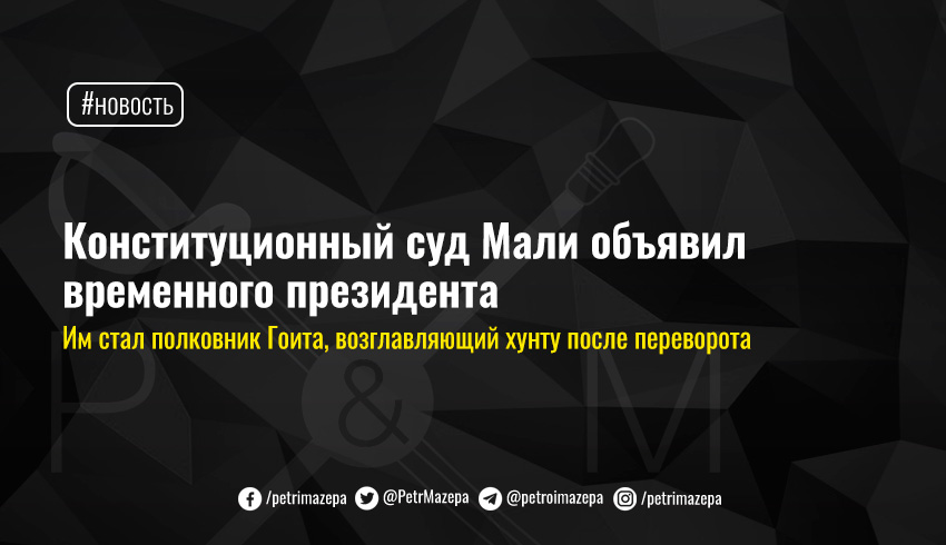 Конституционный суд Мали объявил временным президентом страны полковника Ассими Гоиту, возглавляющего хунту после переворота, сообщает «Радио Свобода».