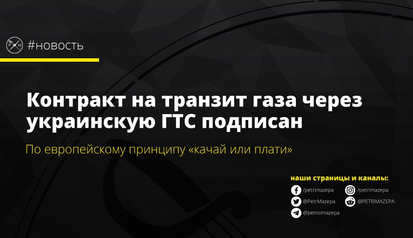 Исполнительный директор НАК «Нафтогаз Украины» Юрий Витренко сообщил, что пятилетний контракт на транзит российского газа в Европу через ГТС Украины подписан. Также он сообщил, что гарантированные объемы прокачки – «это минимум, а не максимум, который мы ожидаем».