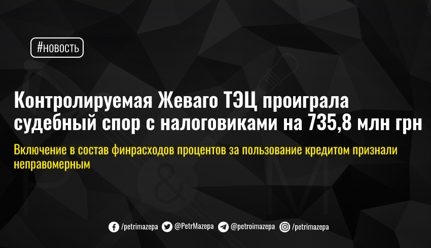 Контролируемая Жеваго ТЭЦ проиграла судебный спор с налоговиками на 735,8 млн грн