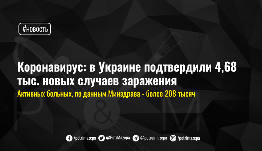 Коронавирус: в Украине подтвердили 4,68 тыс. новых случаев заражения