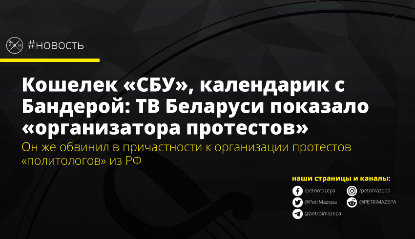 На государственном телевидении Беларуси показали «показания организатора протестов», Юрия Воскресенского, координатора районного штаба Виктора Бабарико. В сюжете рассказали про российских «политологов из передачи Соловьева», а также показали кошелек с символикой и названием Службы безопасности Украины, внутри которого находится календарик со Степаном Бандерой.