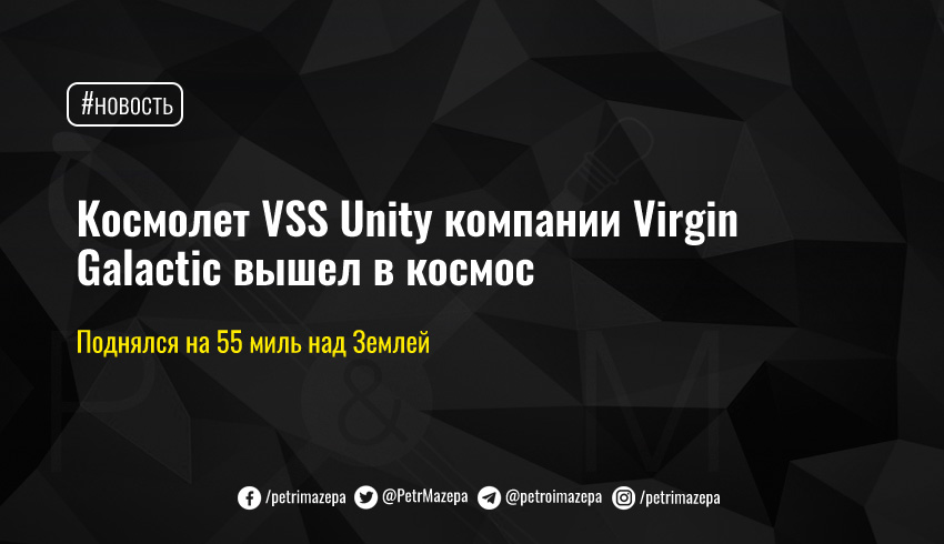 Космолет VSS Unity американской компании Virgin Galactic с двумя пилотами на борту, поднялся в верхние слои атмосферы и достиг пределов космического пространства.