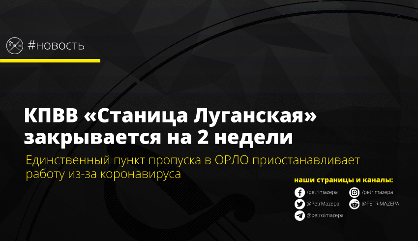 КПВВ «Станица Луганская» закрывается по приказу Командующего ООС из-за угрозы распространения коронавируса. Пересечение КПВВ в обоих направлениях будет запрещено, за некоторыми исключениями. Для тех граждан, которым нужно пройти верификацию в органах социальной защиты в этот период, ее срок будет продлен. Соцвыплаты также не будут остановлены.