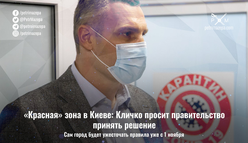 На экстренном брифинге городской голова Киева Виталий Кличко сообщил, что Киев должен перейти в «красную» зону карантинных ограничений. Но поскольку, официально в эту зону можно попасть только по решению государственной комиссии ТЭБ и ЧС, то городской голова обратился к правительству с соответствующей просьбой. А пока там будут решать, КГГА с 1 ноября вводит собственные ограничения, практически идентичные ограничениям «красной» зоны.