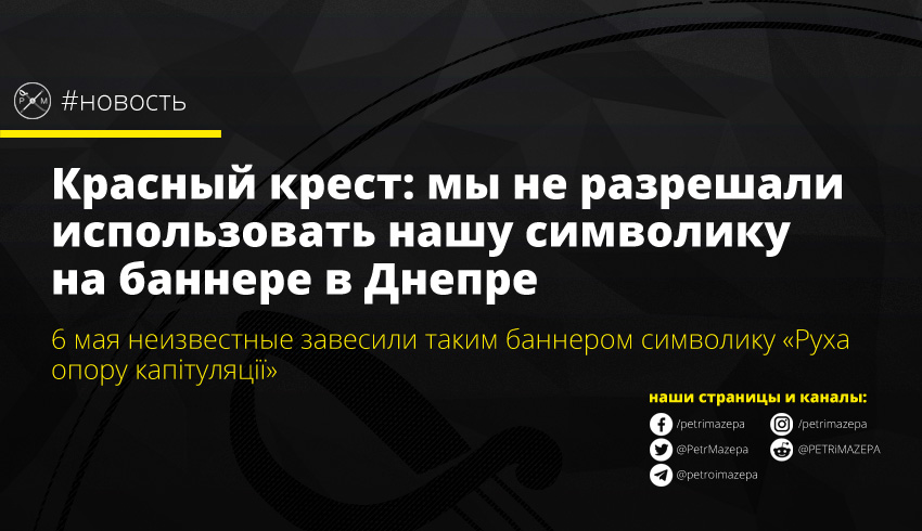 6 мая, неизвестные закрыли символику штаба «Движения сопротивления капитуляции» («Руха опору капітуляції» - РОК) в Днепре баннером с информацией о том, что в помещении общественного хаба «Медиапространство» находится штаб по борьбе с COVID-19, и эмблемой Красного креста. Красный крест в Украине на следующий день выпустил разъяснение – их организация не давала разрешение на использование данной эмблемы в Днепре и не заказывала такой баннер.