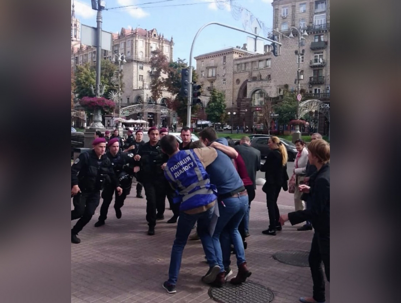 Изначально инфоповодом выступала акция с требованием аннулировать лицензию на вещание известного пророссийского телеканала NewsOne, проходившая по адресу Прорезная, 2. Обычно такие собрания проходили без каких-либо осложнений, а сам канал продолжал свою работу в обычном режиме (большой привет чиновникам, которые так и не сподобились нормально решить вопрос). Впрочем, в этот раз случился форс-мажор, из-за которого и отметилась полиция.