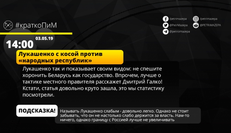 "Петр и Мазепа" снова в эфире! Сегодня, судя по статистике, вам очень понравился наш гринлайт про Александра Лукашенко. Отдельный респект автору: Дмитрий Галко, ты крут. Теперь переходим к картинкам и расшифровкам, все изображения кликабельны.