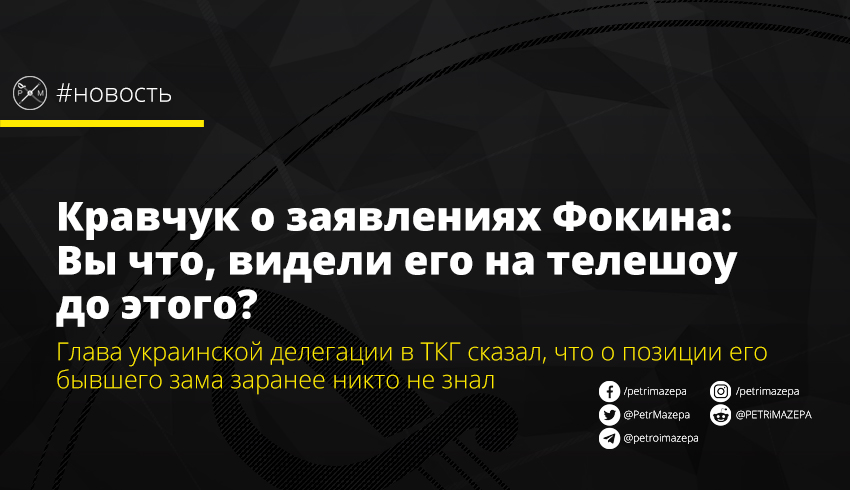 Глава делегации Украины в Трехсторонней контактной группе Леонид Кравчук заявил, что о позиции его уже бывшего заместителя Витольда Фокина заранее никто не знал.