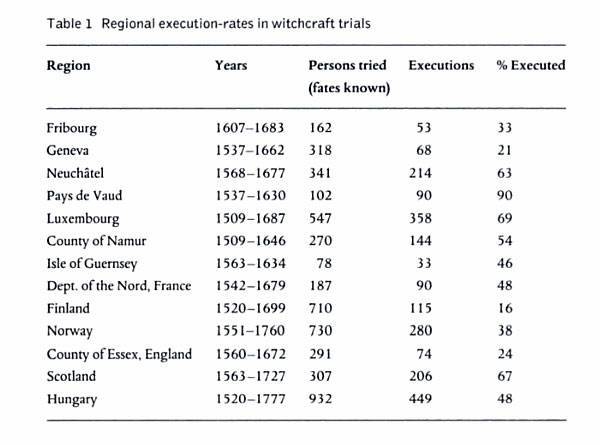 Брайан Левак, автор «The Witch Hunt in Early Modern Europe», определяет цифру жертв примерно в 60 000 человек. Эта цифра была им получена в результате применения среднего соотношения казнённых к подсудимым (6 казнённых из 10 подсудимых) к примерному количеству известных судебных процессов Средневековой Европы (100 000 процессов).