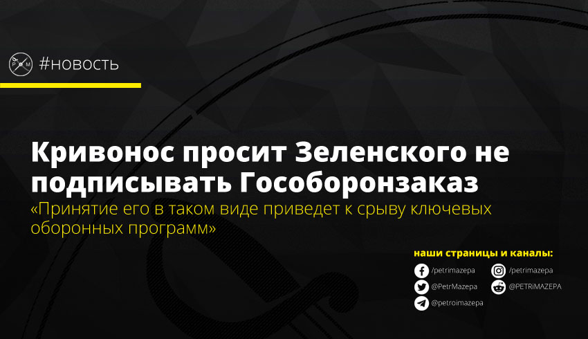 Кривонос просит Зеленского не подписывать Гособоронзаказ