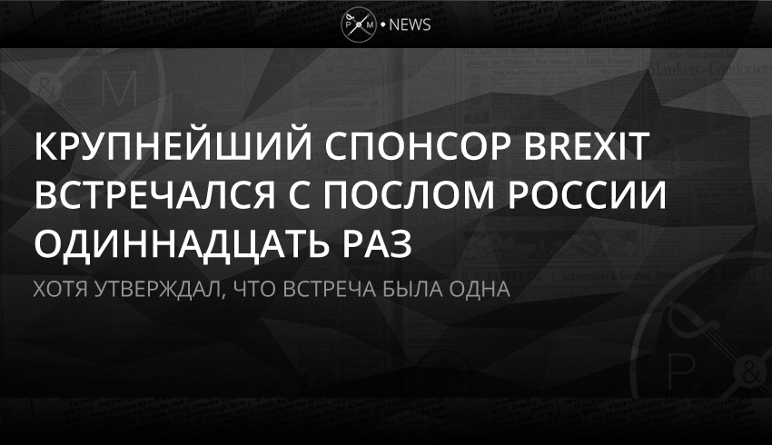 Крупнейший спонсор Brexit встречался с послом России одиннадцать раз