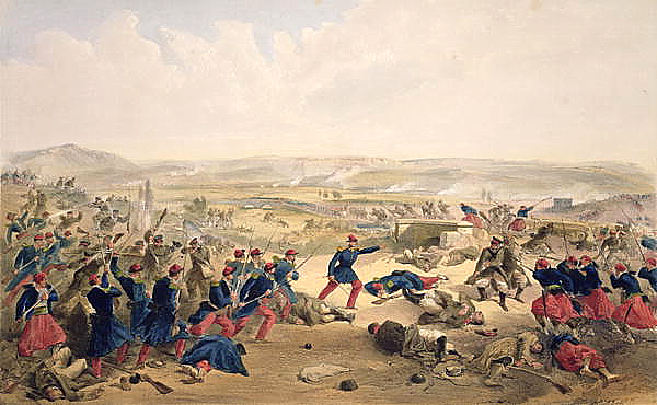 Сразу же сказалось превосходство союзников в дальности и меткости ружейной стрельбы, русские солдаты истреблялись целыми ротами, не имея возможности ответить врагу. Один полк дорвался-таки до штыкового боя. Однако оказалось, что у британцев и пуля, и штык — все молодцы, и полк вышел из боя, потеряв две трети состава.