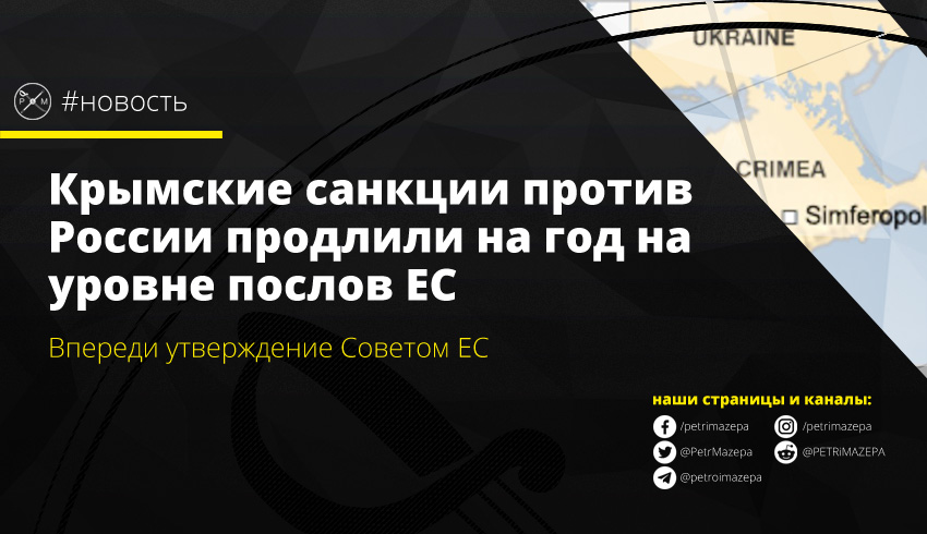 Сегодня, 12 июня, постоянные представители стран ЕС согласовали решение о продлении крымских санкций против России еще на один год.