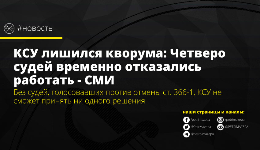 Кворум КСУ – 12 судей, сейчас в суде 15 судей, без четырех из них суд не сможет принимать решения, пишет украинский журналист и блогер Роман Шрайк.