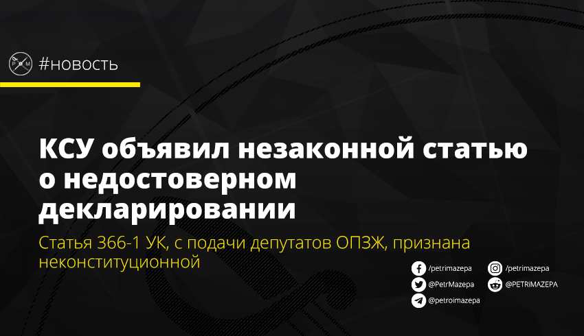 В августе 47 депутатов ОПЗЖ и группы «За майбутнє» (которую связывают с олигархом Игорем Коломойским) направили в КСУ представление относительно конституционности положений законов, составляющих «антикоррупционную платформу»: законов об электронном декларировании, спецконфискации и обновленной ст. 368-5 УК, которая предусматривает уголовную ответственность за незаконное обогащение.