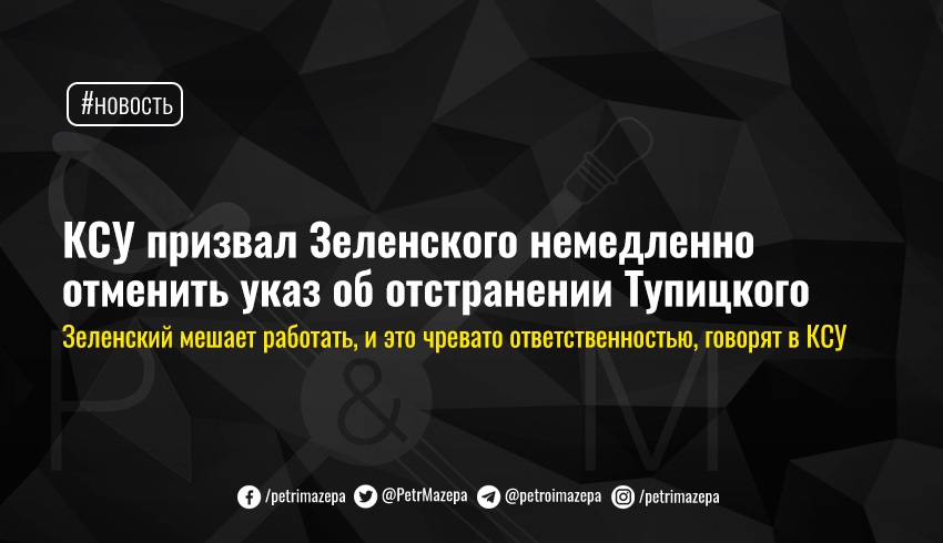 КСУ призвал Зеленского немедленно отменить указ об отстранении Тупицкого