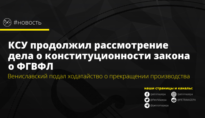 Вениславский выразил ходатайство о прекращении производства по этому делу, поскольку, по его мнению, Верховного суда Украины как субъекта конституционного представления уже не существует. По этому поводу председатель КСУ Александр Тупицкий отметил, что судьи изучат этот вопрос во время закрытой части рассмотрения дела, сообщает «Укринформ».