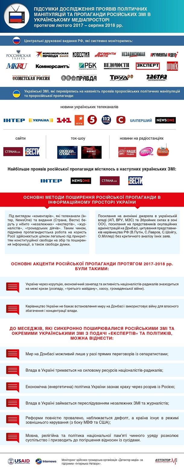 Звіт за підсумками дослідження проявів політичних маніпуляцій та пропаганди російських ЗМІ в українському телепросторі протягом лютого 2017 – серпня 2018 рр.