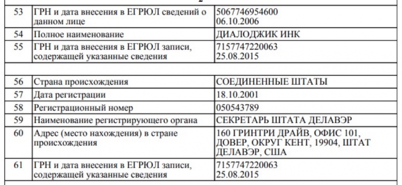 С американской стороны основателем российской фирмы является почти одноименная компания «Диалоджик Инк». Адрес вы уже знаете. Ведь он совпадает с основателем украинской урановой империи.