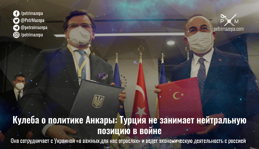 Министр иностранных дел Дмитрий Кулеба на брифинге заявил, что Турция не занимает нейтральную позицию в войне, которую Россия 24 февраля начала против Украины. А сотрудничает с Украиной в важных для нас сферах, хотя и ведет бизнес с россией.