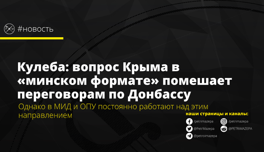 «Сейчас вводить в минский формат еще проблематику Крыма, это действительно, блокировать и Крым, и Донбасс. Нужно исходить из тех реалий, которые есть сейчас. И я вас уверяю, что мы на всех уровнях – и в МИД, и в Офисе Президента постоянно работаем над тем, чтобы вопрос Крыма оставался на повестке дня среди приоритетных», - сообщил Кулеба в интервью Крым.Реалии.