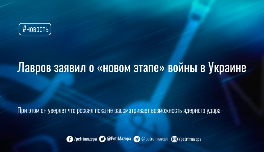 Глава министерства иностранных дел россии сергей лавров заявил о «новом этапе спецоперации» в Украине. «Эта операция продолжится, следующая фаза этой спецоперации сейчас начинается. И, мне кажется, сейчас будет важный момент во время этой спецоперации», — заявил он в интервью India Times.