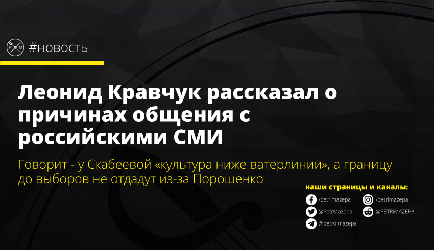 «Меня за это критикуют, но пусть критикуют. Я говорю не то, что они хотят слышать», - добавил Кравчук. И уточнил, что со Скабеевой ему общаться было тяжело, потому что «культура у них ниже ватерлинии».