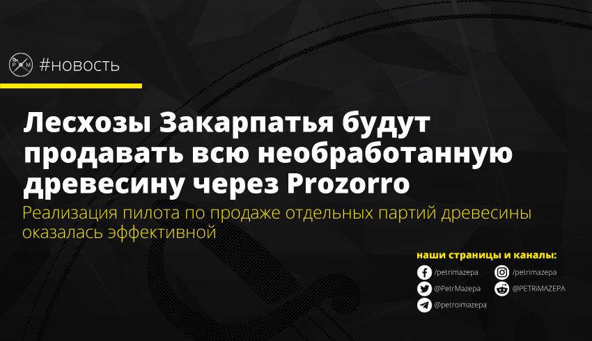 Глава Закарпатской ОГА Алексей Петров рассказал, что реализация пилотного проекта по продаже отдельных партий необработанной древесины через «Prozorro.Продажи» с февраля 2020 доказала эффективность этой системы. В связи с этим лесхозы Закарпатской области должны увеличить объемы продаж необработанной древесины в электронной торговой системе до 100%, передает «Экономическая правда».