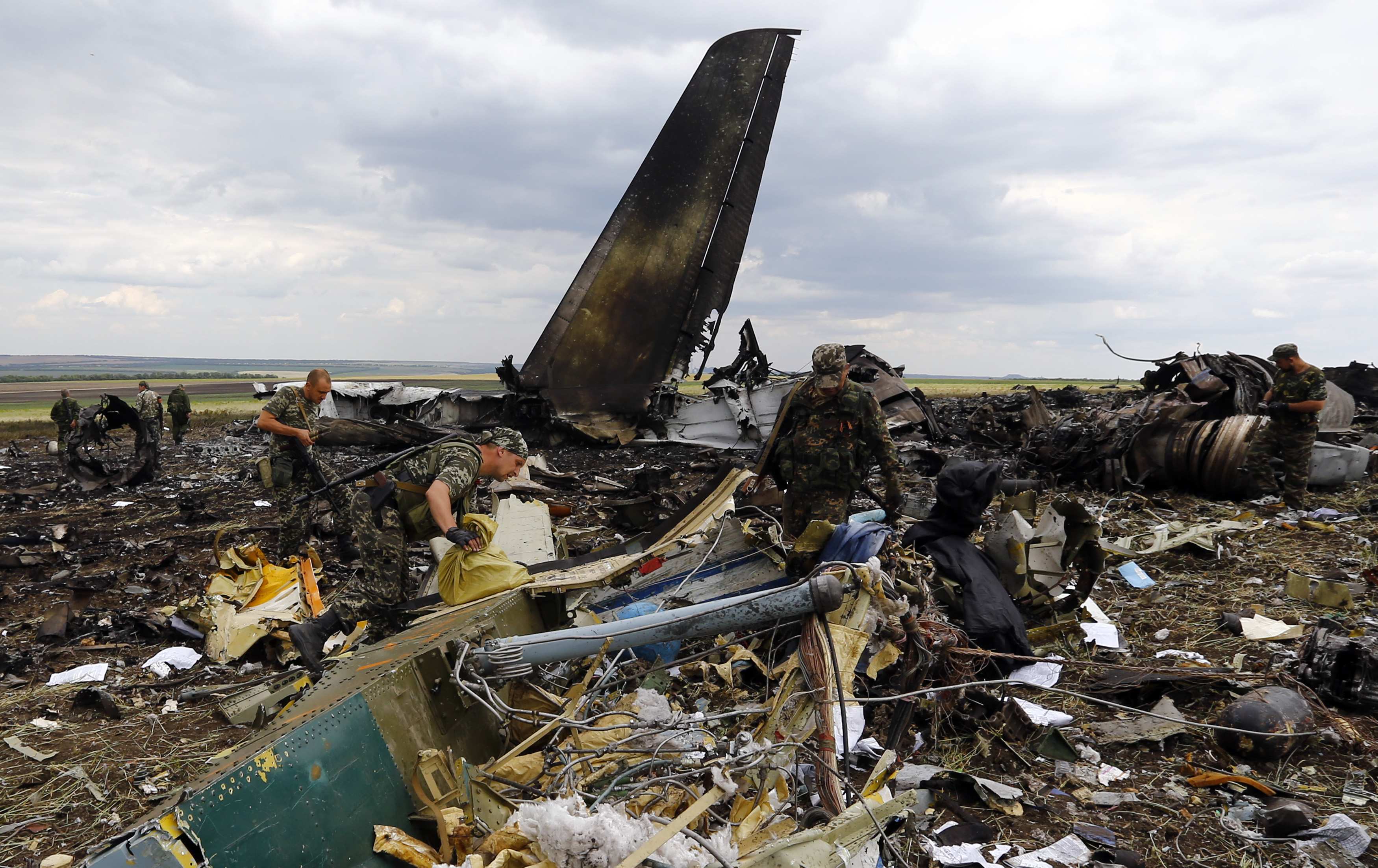 Обломки транспортного самолёта Ил-76, сбитого возле Луганска