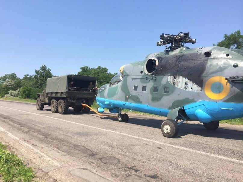 Эвакуация повреждённого под Славянском боевого вертолёта Ми-24П