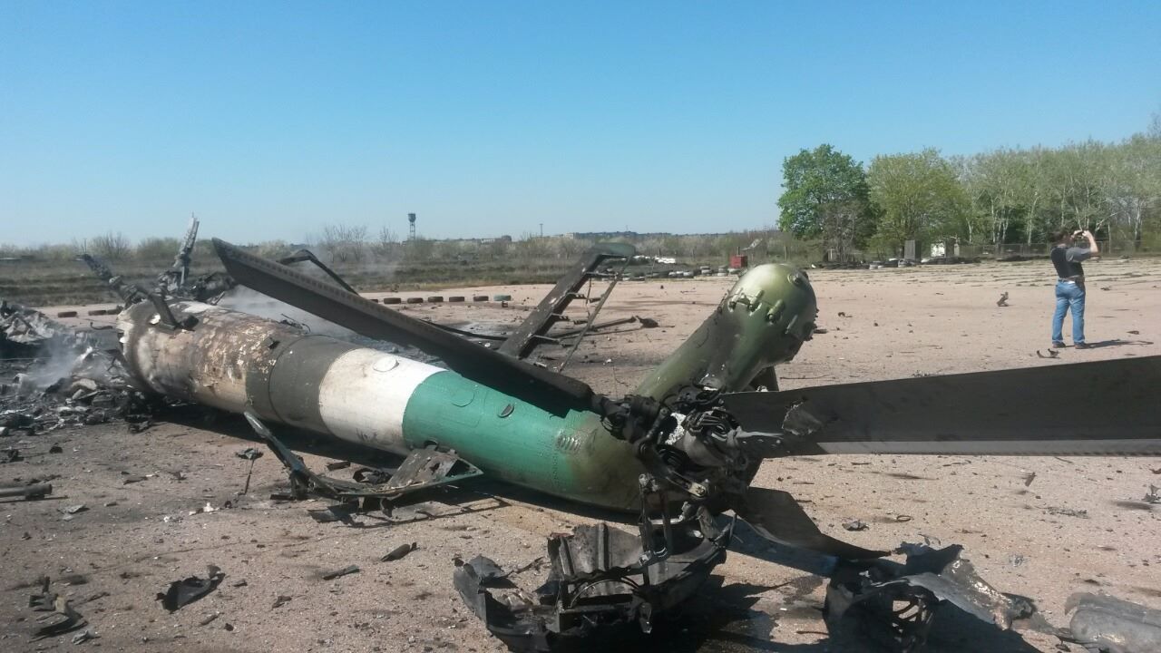 Сожжённый вертолёт Ми-8 на аэродроме Краматорска