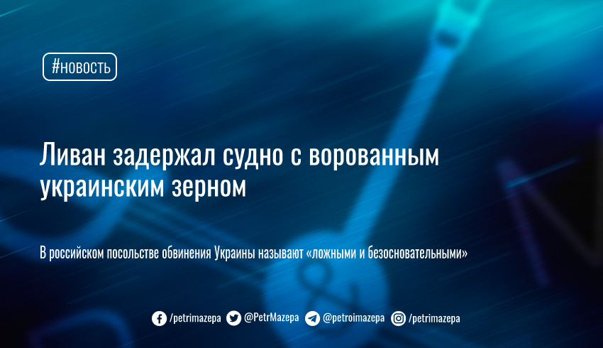 В Ливане задержали сирийское судно, перевозившее похищенное украинское зерно. В российском посольстве в Ливане утверждают, что якобы не имеют информации о судне, а обвинения Украины посольство с цинизмом называет «ложными и безосновательными».
