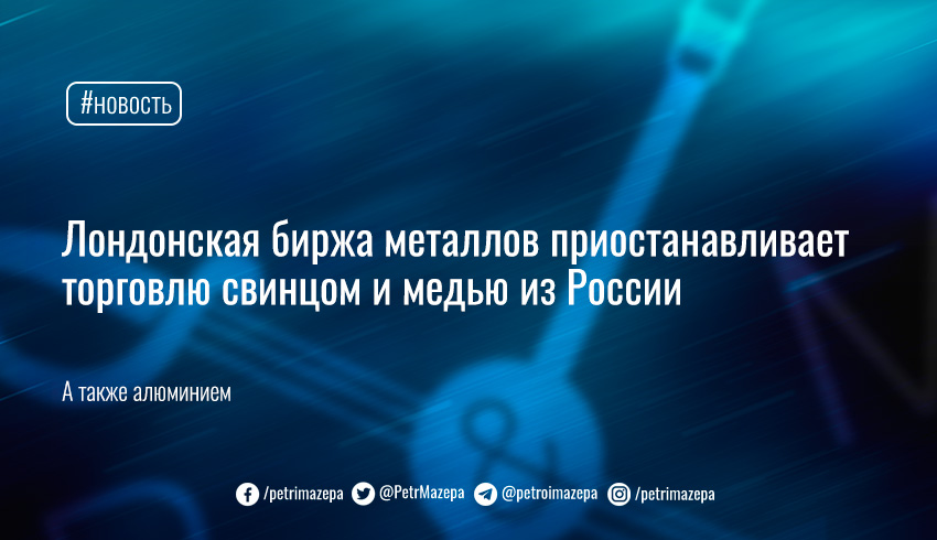 Лондонская биржа металлов немедленно приостанавливает торговлю некоторыми металлами из России — свинцом, алюминием и медью.